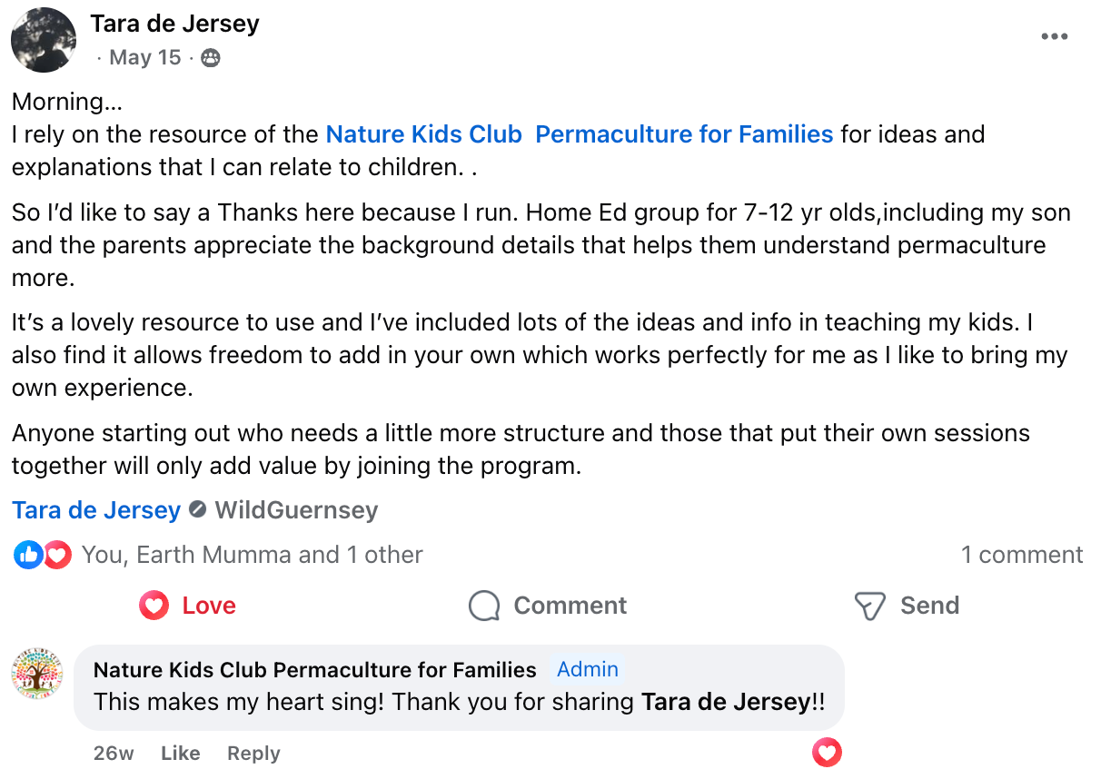 - The only permaculture program created with the whole family in mind: parents learn 'how to do permaculture' with children through embodiment practices.